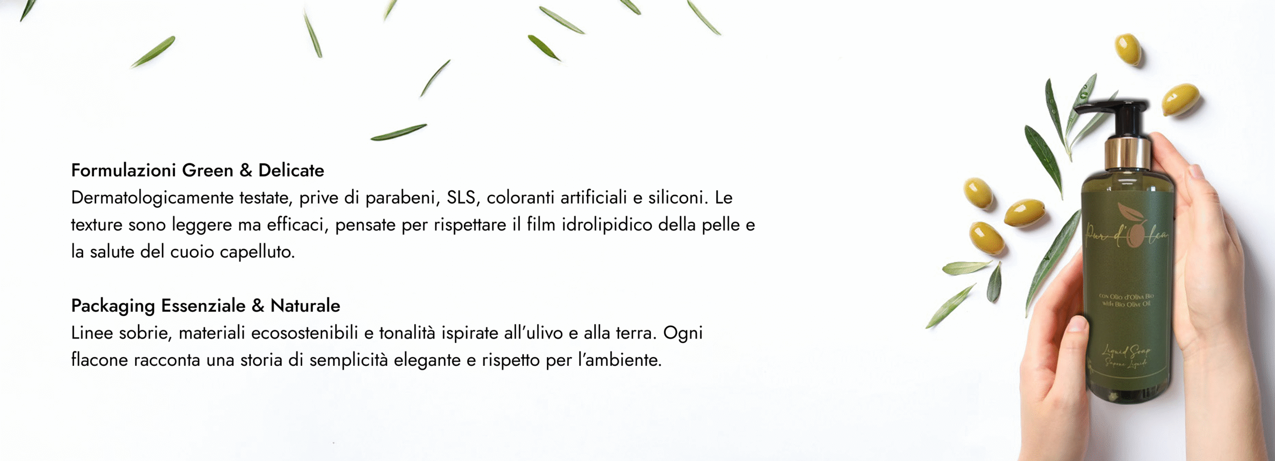 Pur d’Olea trasforma la cura quotidiana in un’esperienza sensoriale autentica, dove ogni gesto riflette un ritorno all’essenziale. Le delicate profumazioni evocano i paesaggi mediterranei, mentre le texture avvolgenti si fondono perfettamente con la pelle e i capelli, lasciando una piacevole sensazione di freschezza e benessere.