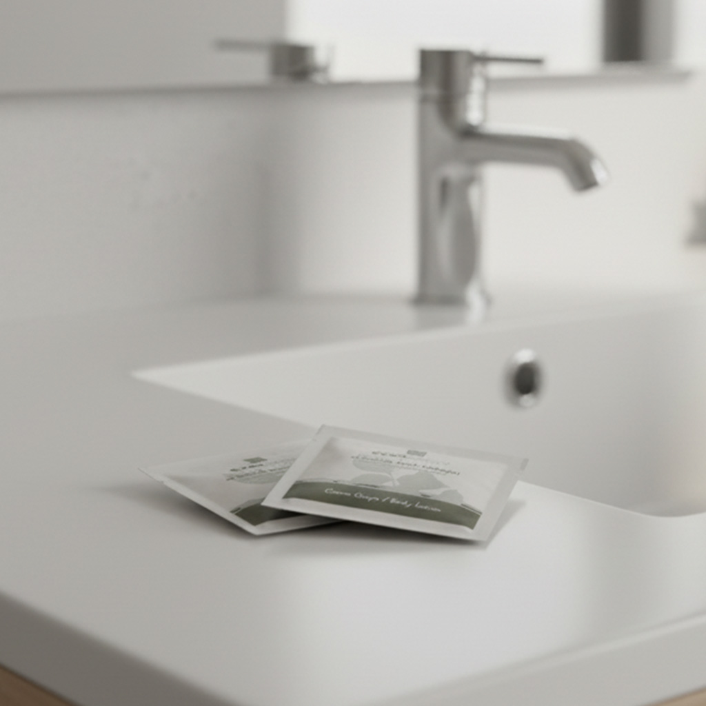 • Per i prodotti complementari, offriamo confezioni in astucci di cartone riciclato, valorizzando materiali già in circolazione e promuovendo un’economia più circolare. Dove necessario, adottiamo flowpack biodegradabili o in carta certificata, pensati per garantire protezione e qualità con un minore impatto ambientale. Spazzolino e Rasoio in plastica vegetale.